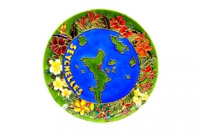 Seychelles Map - hand made painted decorative plate