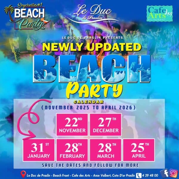 SATURDAY 28TH MARCH / BEACH PARTY / LE DUC DE PRASLIN