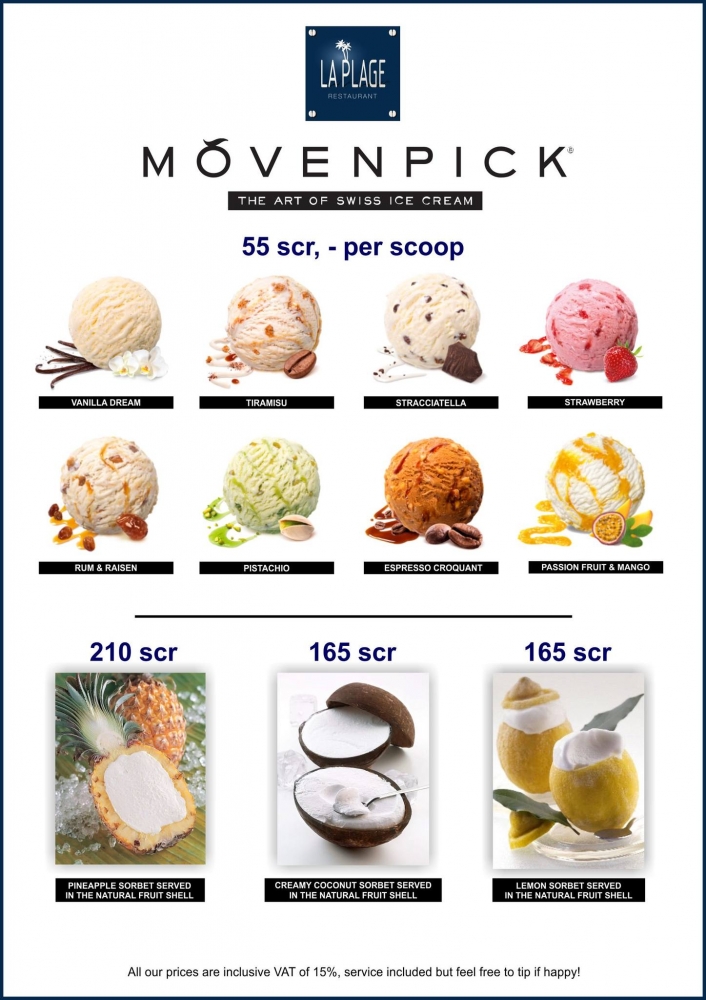 QUALITY ice creams and sorbets @ La Plage restaurant