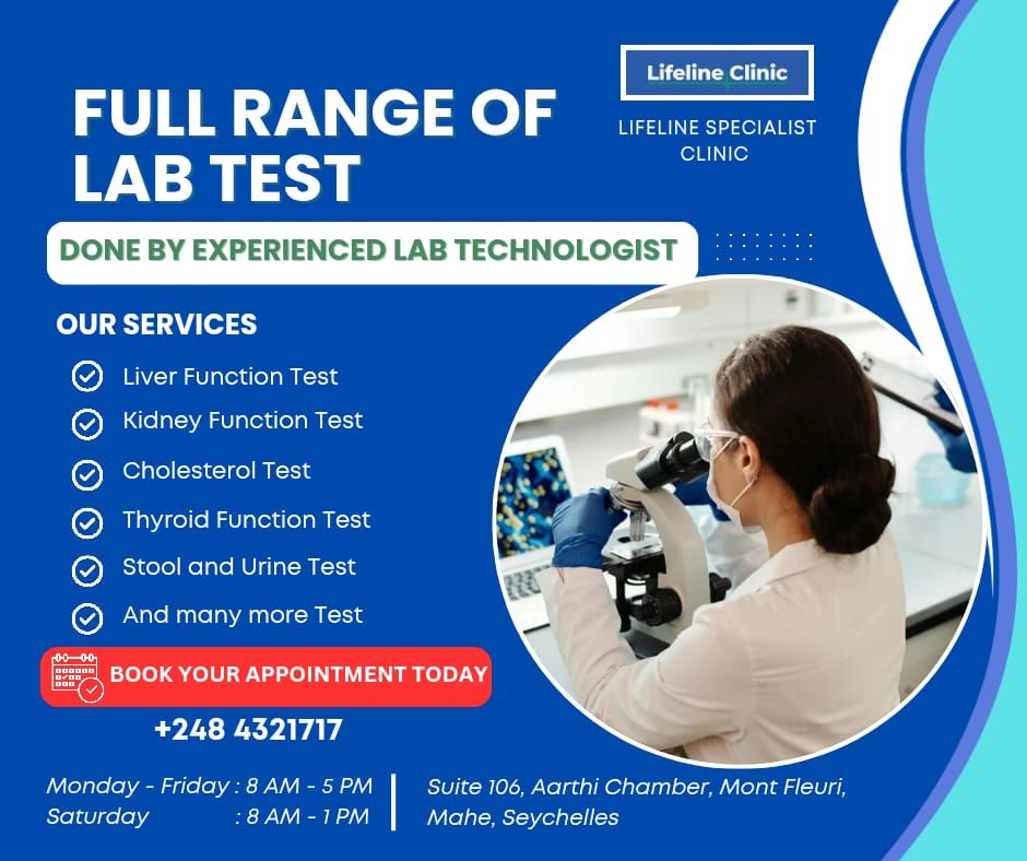 At Lifeline Specialist Clinic, we offer a full range of laboratory services including: