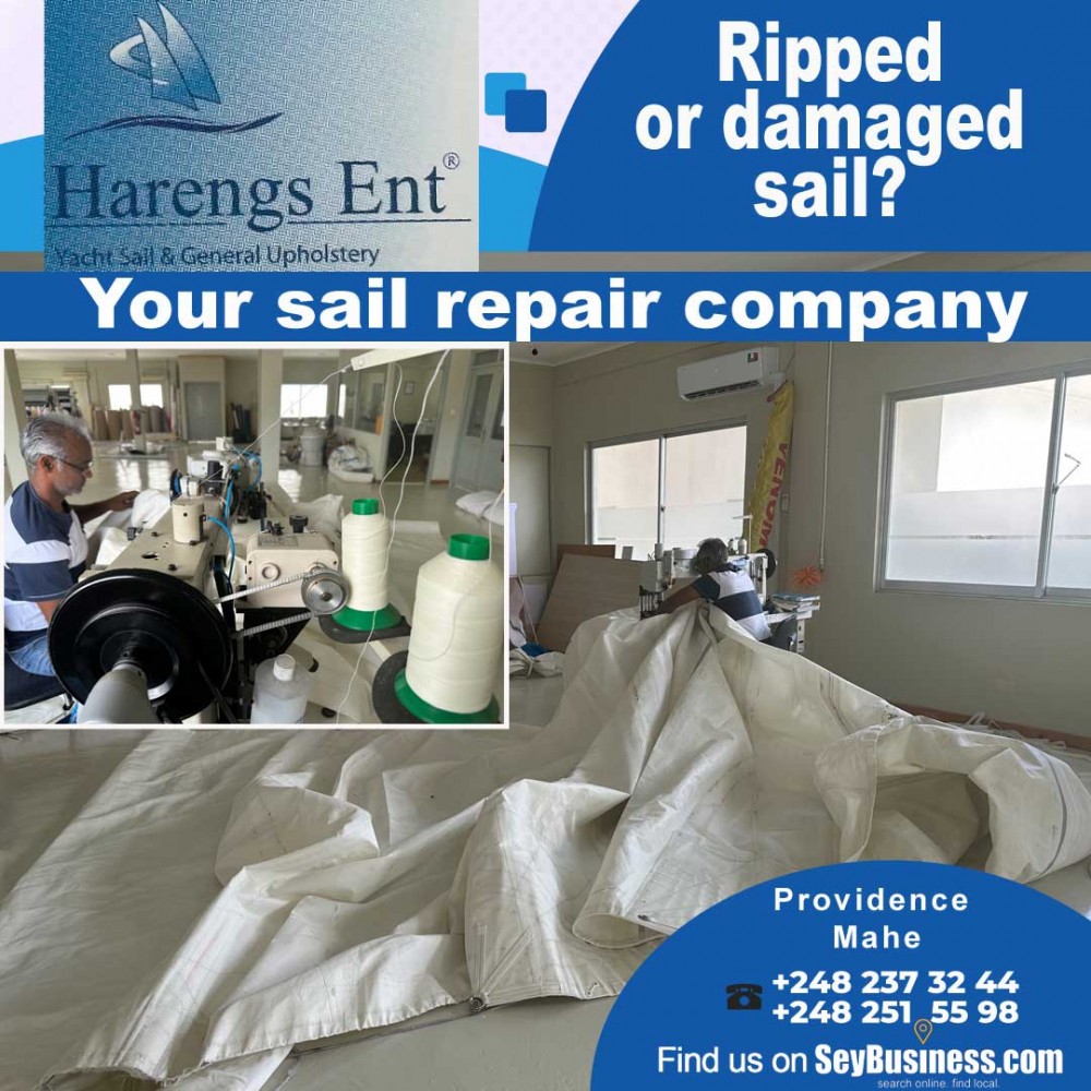 Ripped or damaged sail? Hareng's Enterprise, your sail repair company...